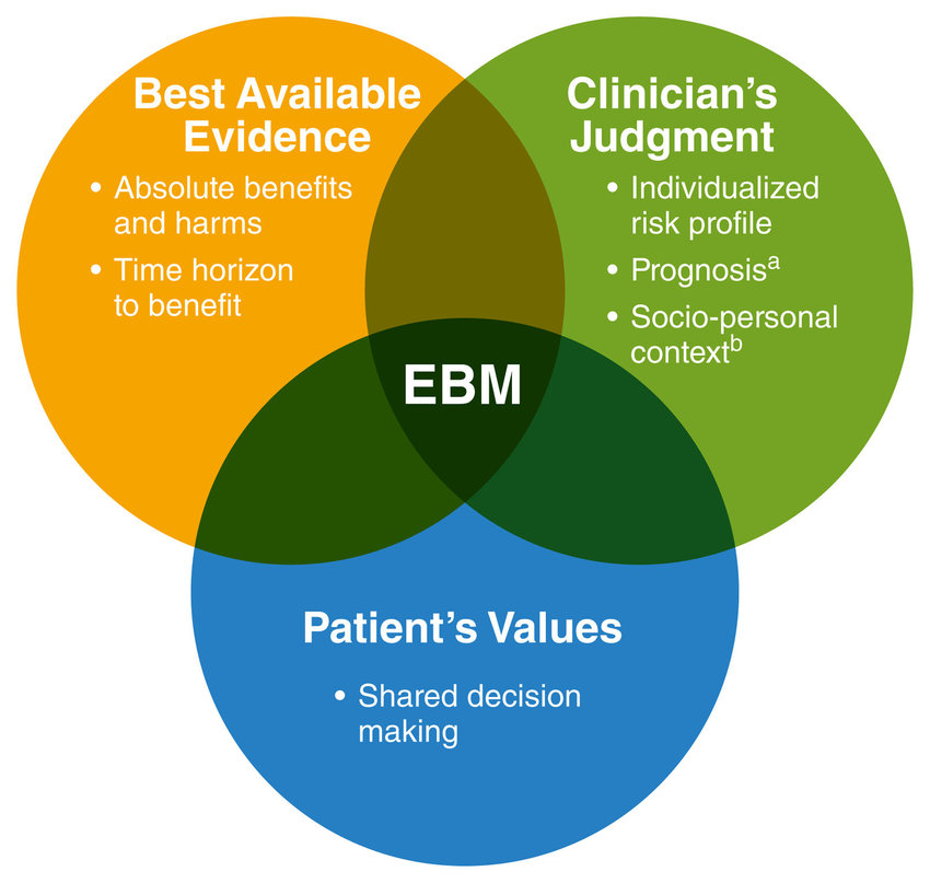Evidence-Based Medicine (EBM) adalah : Proses yang digunakan secara sistematik untuk melakukan evaluasi, menemukan, menelaah/ me-review, dan memanfaatkan hasil-hasil studi sebagai dasar dari pengambilan keputusan klinik. EBM merupakan integrasi keahlian klinis, bukti penelitian terbaik, dan nilai pasien, dengan tujuan mencapai manajemen pasien sebaik mungkin. (Sackett et al.,2000)